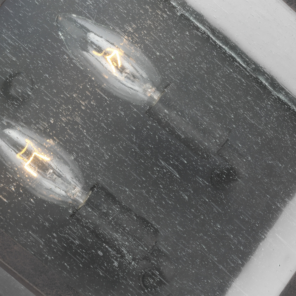 The Sean Lavin Galena two light outdoor wall fixture in sable enhances the beauty of your property, makes your home safer and more secure, and increases the number of pleasurable hours you spend outdoors. Galena is a Europe-inspired classic lantern. Simple and refined, Galena features a gently curved hook detail atop a vented, square-off roofline, and candle tubes floating within the tapered clear glass shades. Galena is a warm, welcoming silhouette offered in our NEW Sable finish.
