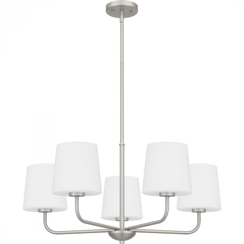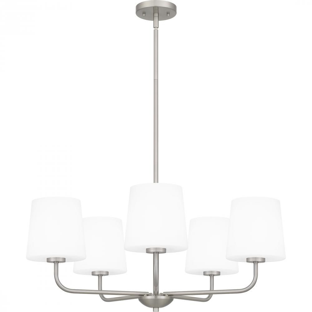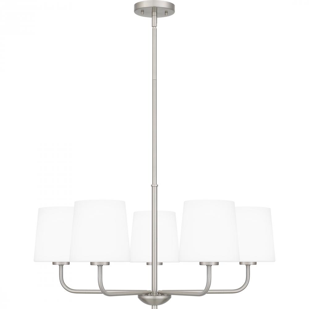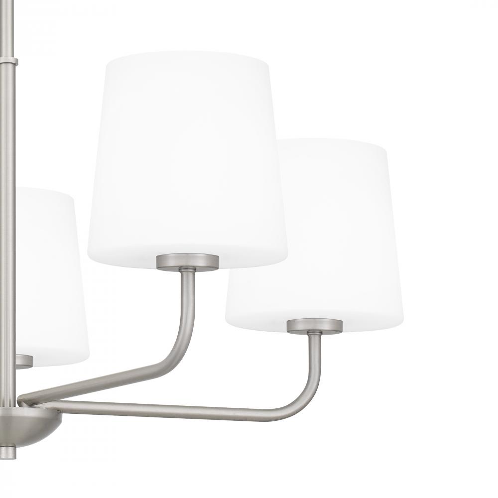 Available in a variety of sizes, Gallagher chandeliers offer the perfect complement to any space. Choose from a classic brushed nickel finish with opal etched glass shades- or go the more modern route with a matte black finish and white fabric shades. Whi