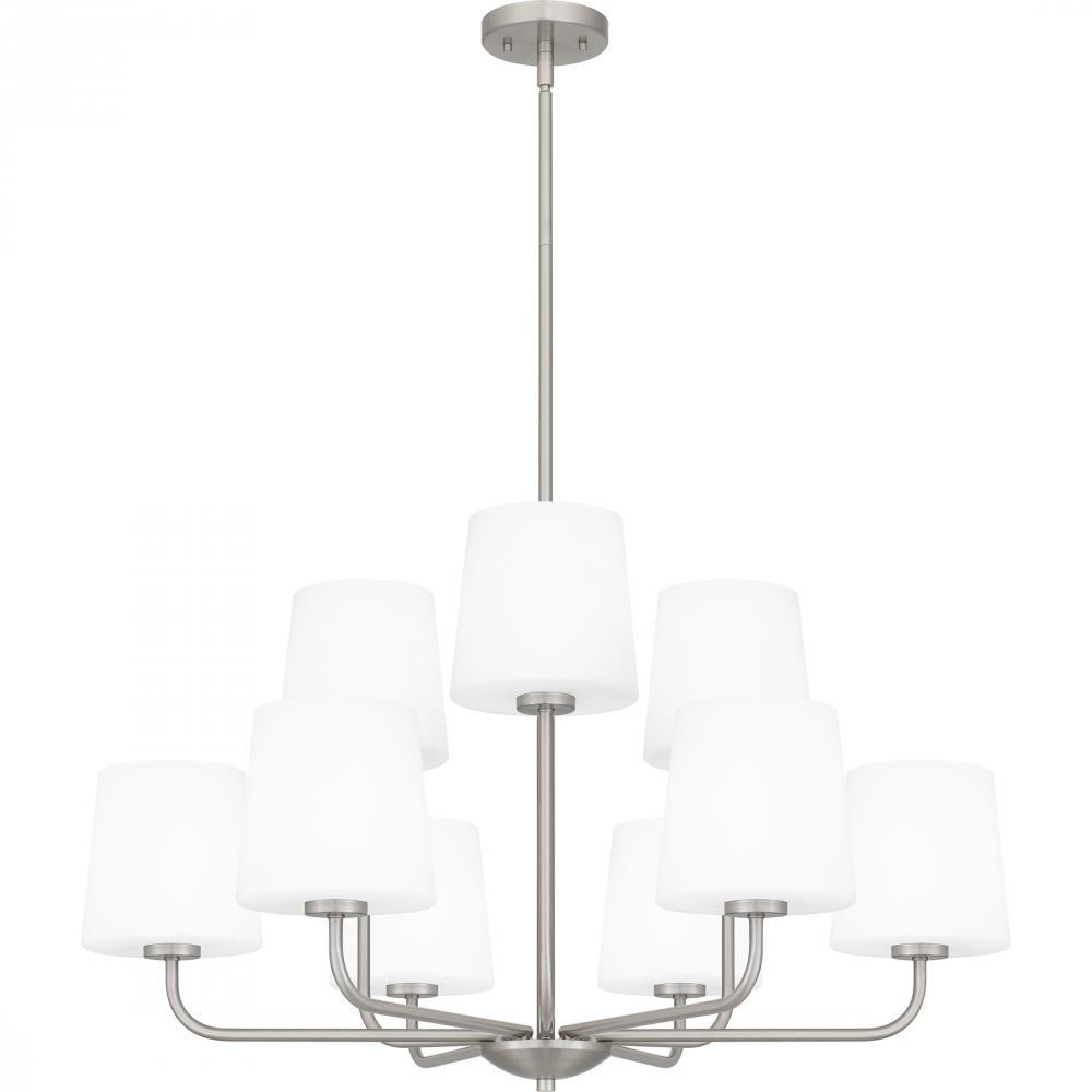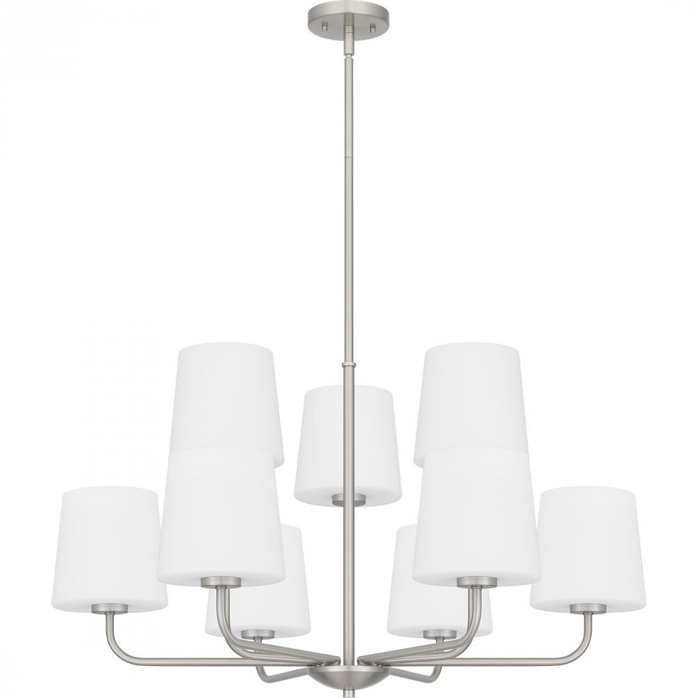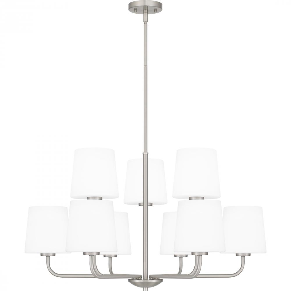 Available in a variety of sizes, Gallagher chandeliers offer the perfect complement to any space. Choose from a classic brushed nickel finish with opal etched glass shades- or go the more modern route with a matte black finish and white fabric shades. Whi