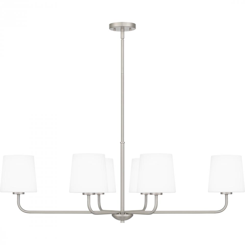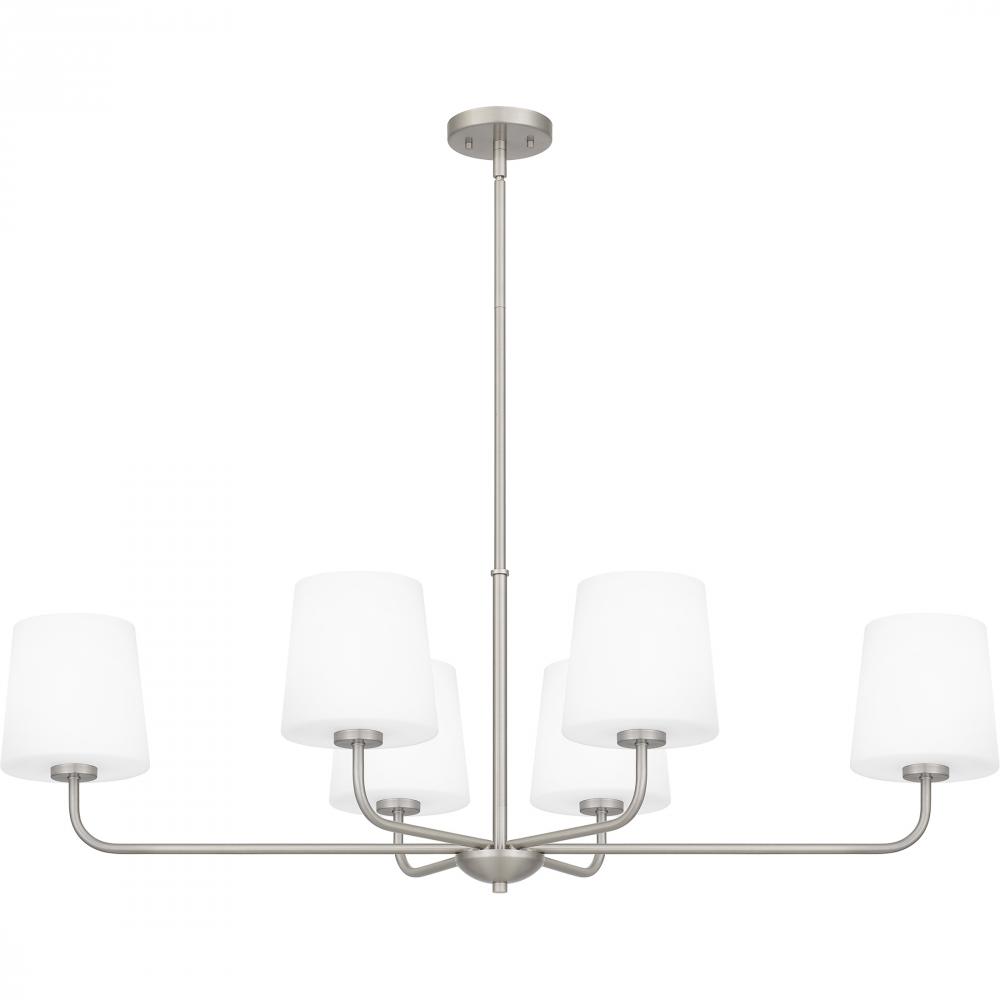 Available in a variety of sizes, Gallagher chandeliers offer the perfect complement to any space. Choose from a classic brushed nickel finish with opal etched glass shades- or go the more modern route with a matte black finish and white fabric shades. Whi