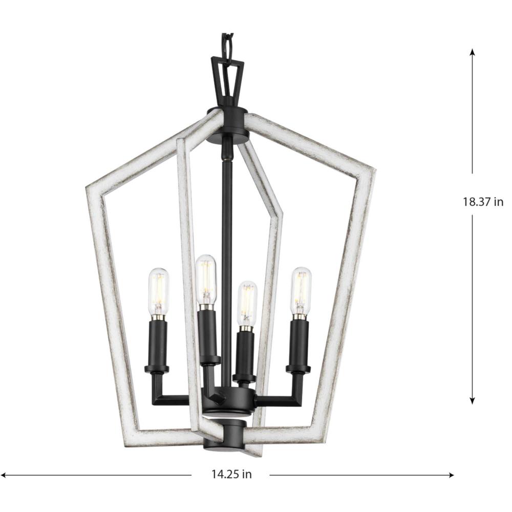 Progress P500377-31M - Galloway Collection Four-Light 18" Matte Black Modern Farmhouse Chandelier with Distressed White