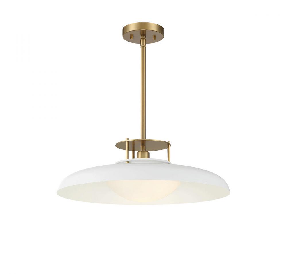 Gavin 1-Light Pendant in White with Warm Brass Accents