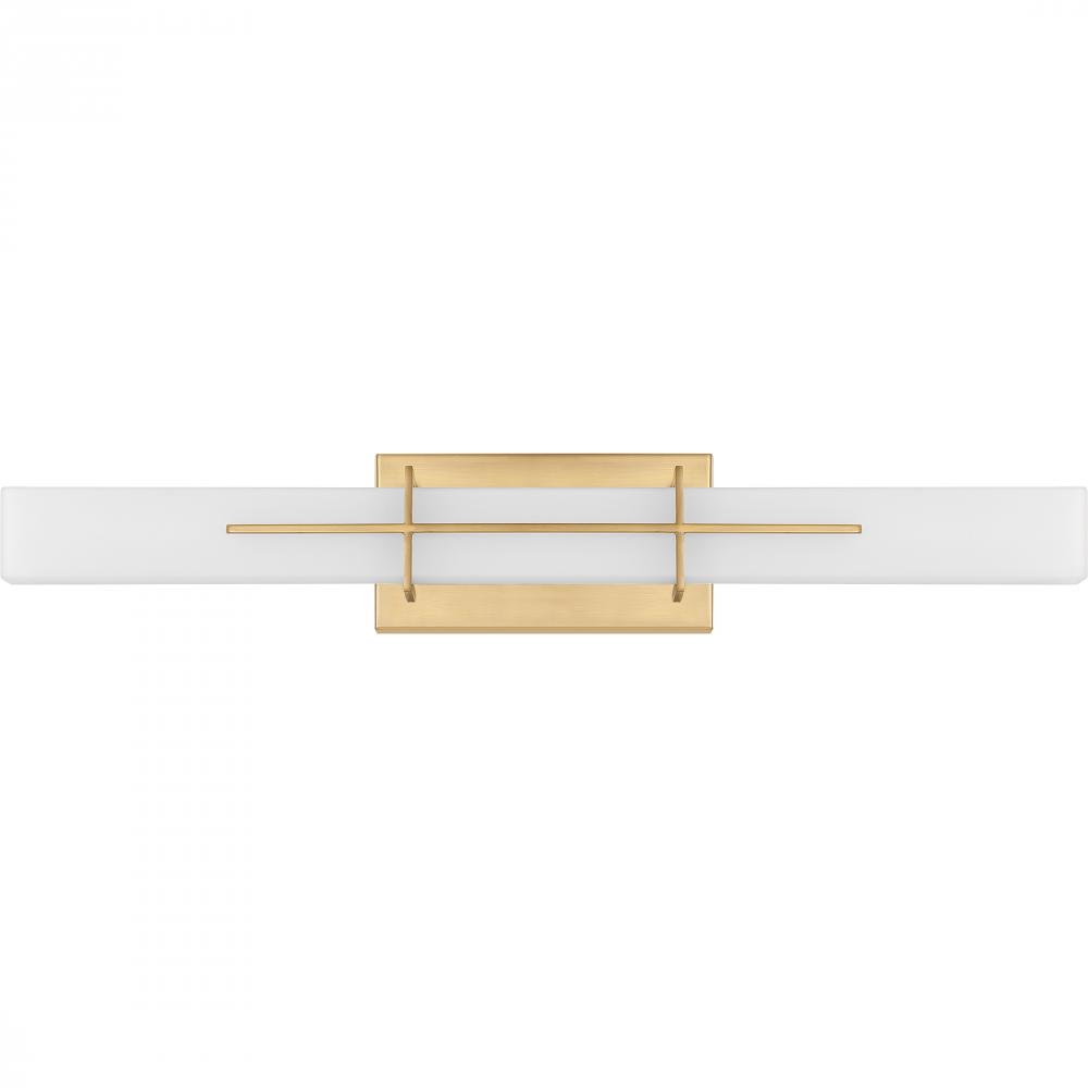 The Gemini collection is the perfect updated look for your bathroom. The modern style of this fixture is available in an Aged Brass or Polished Chrome finish, and is paired with an opal etched glass shade. The integrated LED light source provides energy sa
