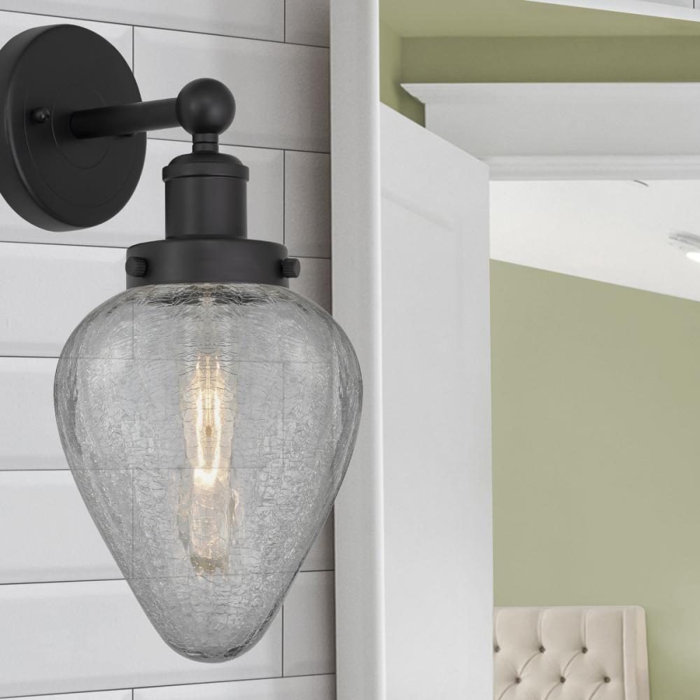 Geneseo - 1 Light - 7 inch - Matte Black - Clear Crackled Shade - Sconce