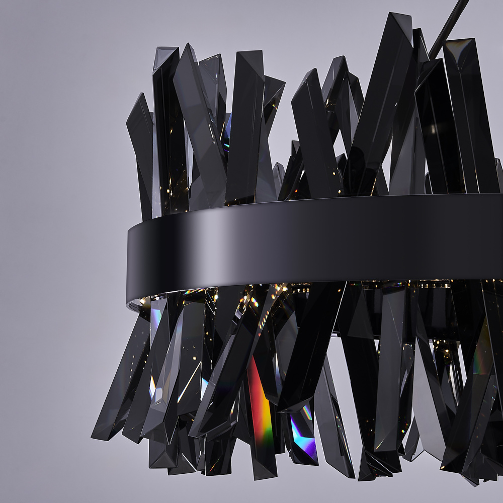 Glacier is the only way to describe this eye-catching collection. Contemporary and bold, this new combination of a Black Nickel (184) frame, smokey ice-like crystals, and the seamless LED lighting adds a modern, sharp addition to this ever popular collection.