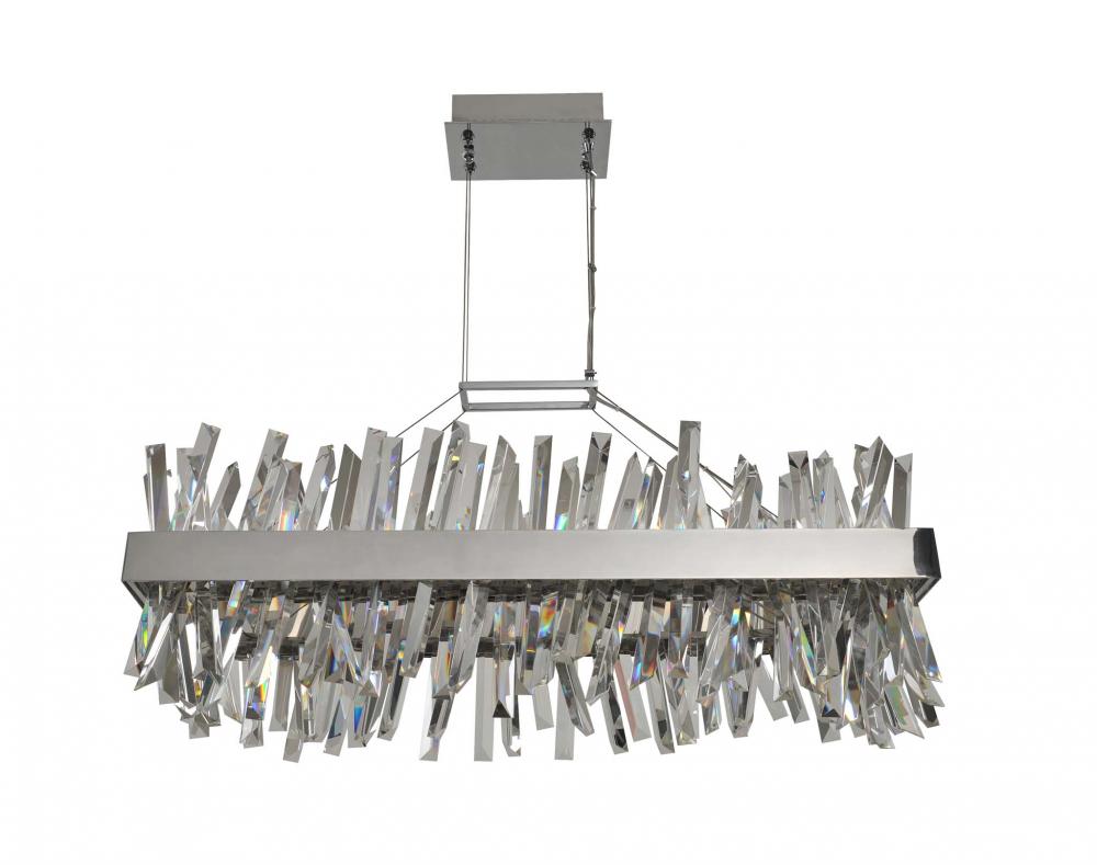 Glacier is the only way to describe this eye catching series. Polished Chrome or Brushed Champagne Gold frames are backlit by LED Lighting and spears of Ice Shaped Crystals which make this one of the unique light forms in the market. Available in Polished Chrome, Matte Black, and Brushed Champagne Gold.