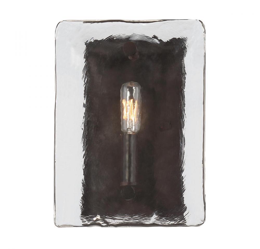 Strong geometric lines combine with gorgeous glass for a light fixture you’ll love everyday. Designed by Brian Thomas, the straightforward, clean-lined Glenwood sconce has a classic, rich, dark, English bronze finish that blends well with other hardware and color palettes in your home. The rectangular shaped wall plate has a single glass panel. And not just a plain pane! The panel is made of beautiful, clear, water Piastra glass for a truly artisan aesthetic. One 60W, C-style bulb provides ample light —and the 8” wide by 11” high size is ideal to place one or more of these sconces along the walls of your dining room, kitchen, foyer, living room, hallway, family room, bedroom, great room, office, media room, or stairway.