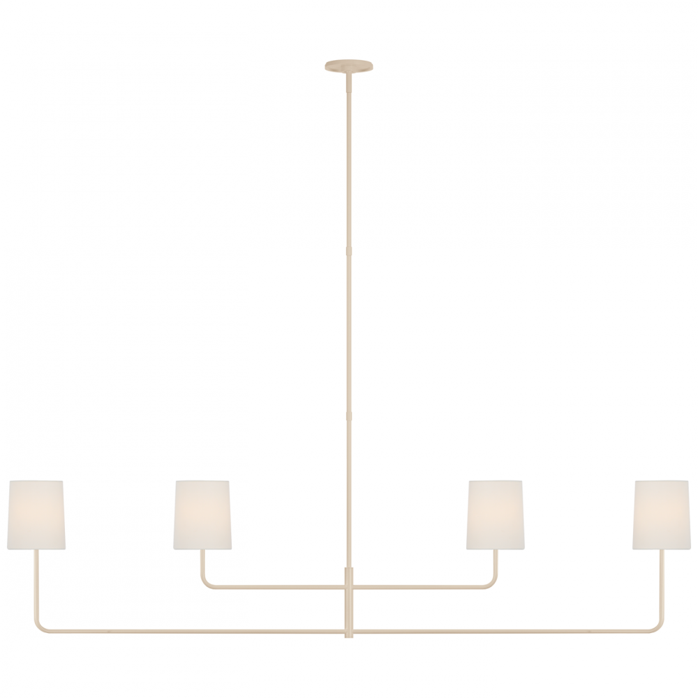 Go Lightly 70" Four Light Linear Chandelier in China White with Linen Shades