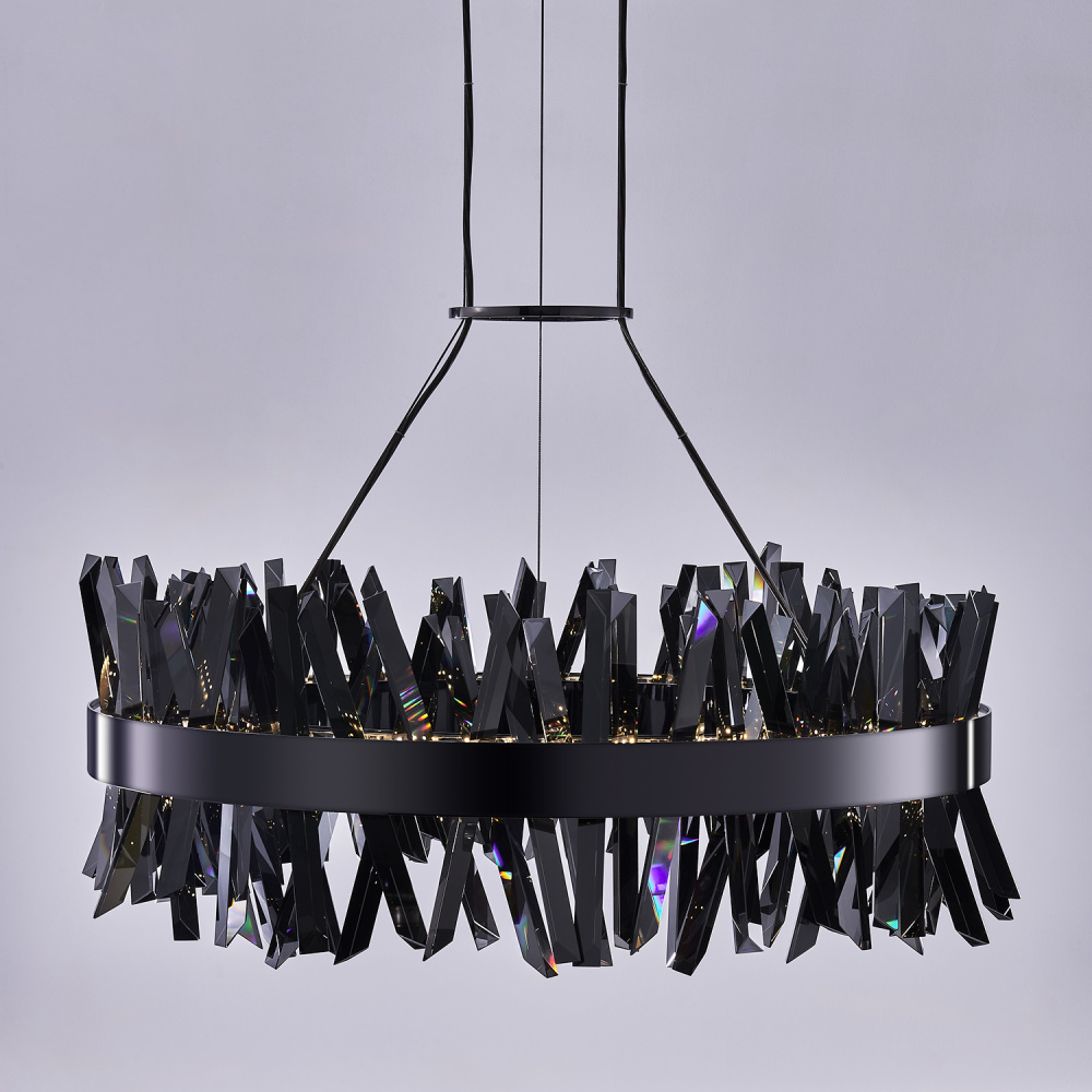 Inspired by fine jewelry and earrings, the Goccia collection features an aluminum and steel Winter Brass (044) frame that seems to effortlessly pierce through the oversized, luxurious crystals. The up and down lights create a bright atmosphere and a captivating sparkle perfect for any space.