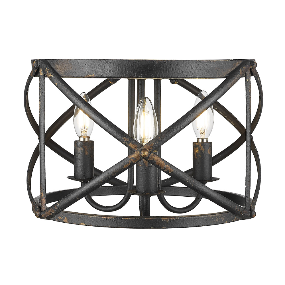 Golden Lighting Alcott 3-light Flush Mount in Antique Black Iron