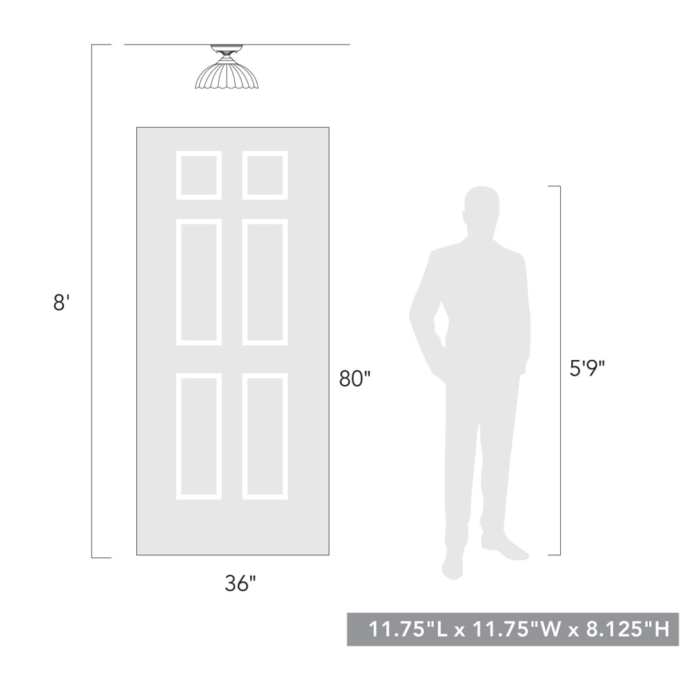 Bring refined elegance into your home with the Golden Lighting Audra 1-light 12in Semi-Flush Mount in Brushed Champagne Brass. Featuring a glass shade and a brushed champagne brass frame, it creates a welcoming atmosphere. The clear glass shade allows for brilliant, unobstructed light with a polished finish, making it a perfect choice for any interior design. The brushed champagne brass finish offers an understated and modern sophistication, creating a chic ambiance. This semi-flush mount is damp location rated, ideal for entryways, bedrooms, kitchens, and living areas. It requires 1 E26 Medium base bulb (not included) with a maximum wattage of 100, and overall dimensions are 11.75"W x 8.13"H x 11.75"D. This versatile fixture is a stylish statement piece that adds quality and charm to your home.