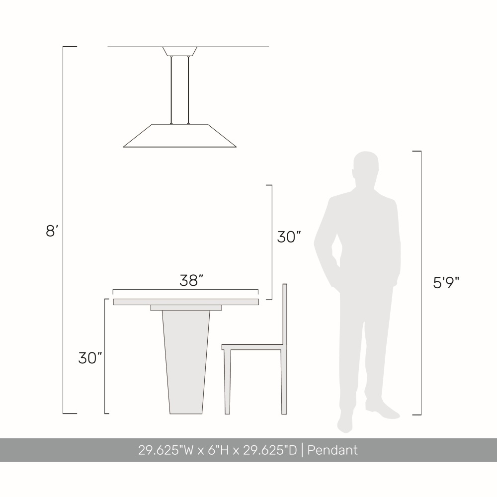 Bring modern elegance into your home with the Golden Lighting Faroe 30in Integrated LED Pendant. Featuring a felt shade and a Coffee frame, it creates a welcoming atmosphere. The Coffee-colored felt shade enhances sound quality while providing a cozy, focused light below, complemented by a rich black interior that softens the glow. This deep, rich brown finish adds a grounding and sophisticated element to any room, making it an ideal choice for modern and transitional interiors. Add a stylish statement to kitchens, dining rooms, or bedrooms — perfect for focused yet decorative illumination in entryways, foyers, and even bathrooms. Dry Location Rated: Ideal for indoor spaces not subject to moisture, such as bedrooms, living rooms, and hallways. Sloped-Ceiling Compatible, easily install on angled ceilings and customize the hanging length to suit your space with adjustable height: Min: 7.375"- Max: 127.375". Overall Dimensions: 29.63"W x 6"H x 29.63"D. Enjoy brilliant, energy-efficient illumination with integrated LED technology providing 600 rated lumens and a 3000K CCT for a warm glow. The Faroe collection blends luxury with responsibility, proving that design can be both beautiful and eco-friendly.