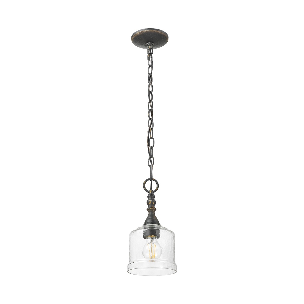 Golden 0806-M1L ABI-HWG - Golden Lighting Keating 1-light Pendant in Antique Black Iron and Hammered Water Glass