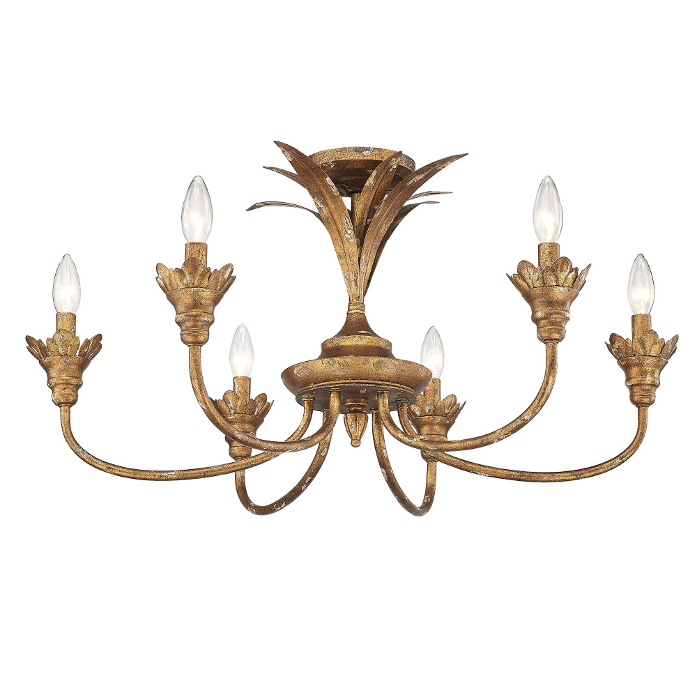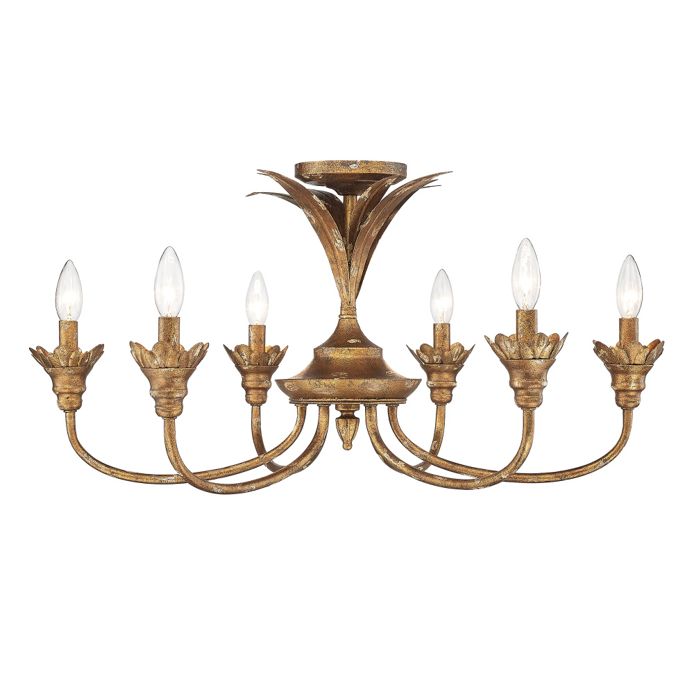 Golden 0846-6SF HG - Golden Lighting Lillianne 6-light Semi-Flush Mount in Heirloom Gold
