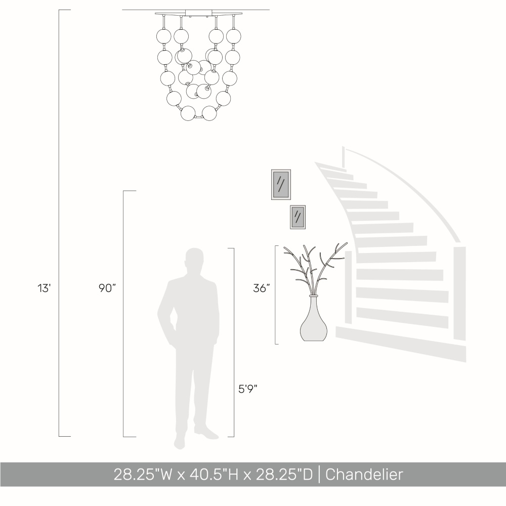 Bring a touch of glam sophistication into your home with the Golden Lighting Pearla Integrated LED 28in Pendant. This luxurious fixture features a stunning iridescent glass shade and a brushed champagne brass frame, creating a mesmerizing centerpiece that fills your space with sparkle. The iridescent glass balls catch the light brilliantly, offering a dynamic visual display. With integrated LED technology, this pendant provides energy-efficient illumination, making it perfect for dining rooms and entryways. Fully rated for dry locations, its dimensions of 28.25"W x 40.5"H x 28.25"D are ideal for hanging above dining tables or in grand spaces.