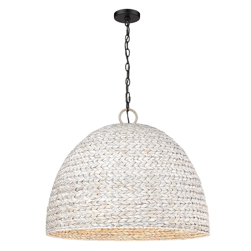 Golden Lighting Rue 5-light Pendant in Matte Black and Woven Sweet Grass shade