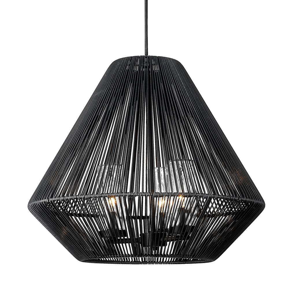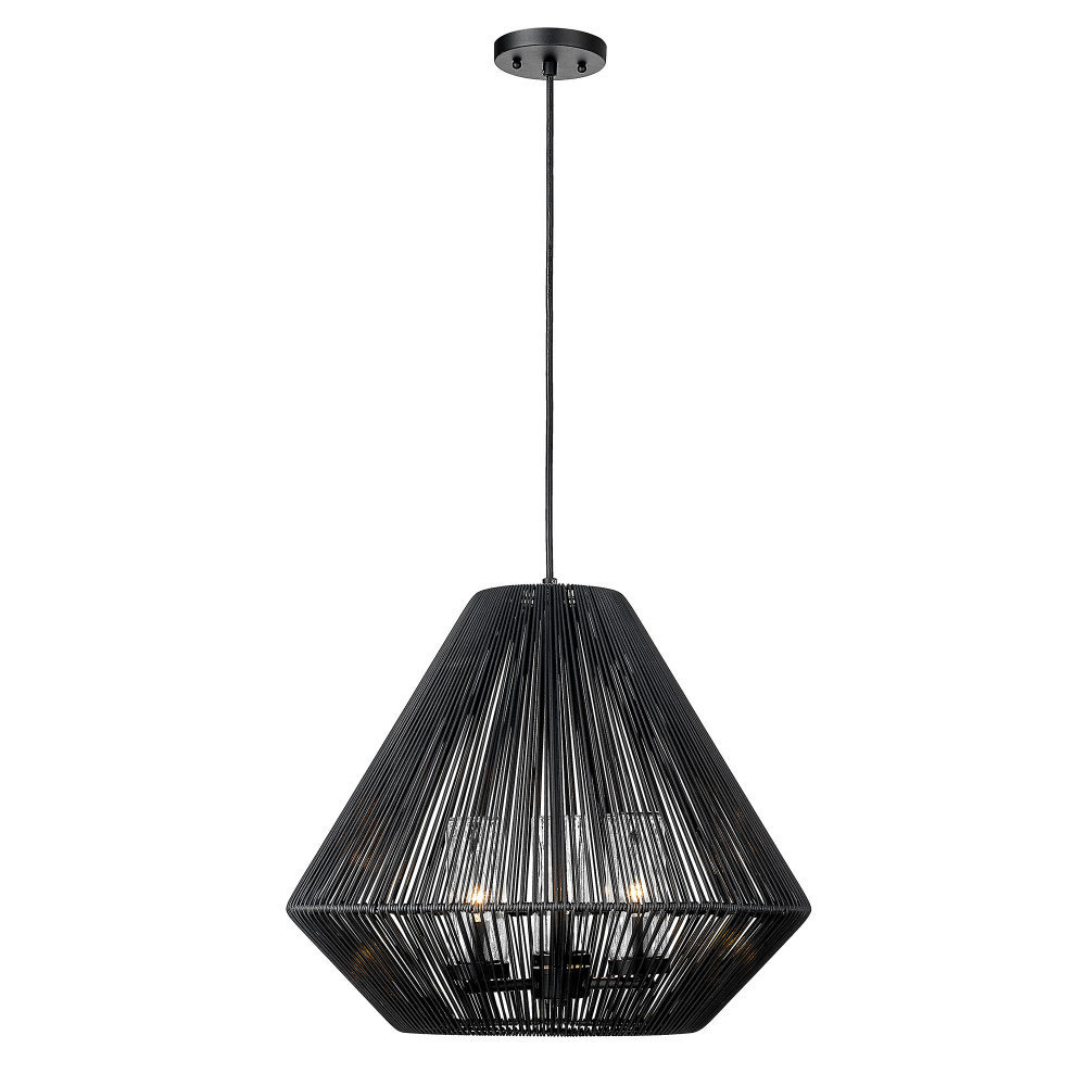 Golden 6937-4P BLK-NR - Golden Lighting Valentina 4-light Pendant in Matte Black and Natural Raphia Rope shade