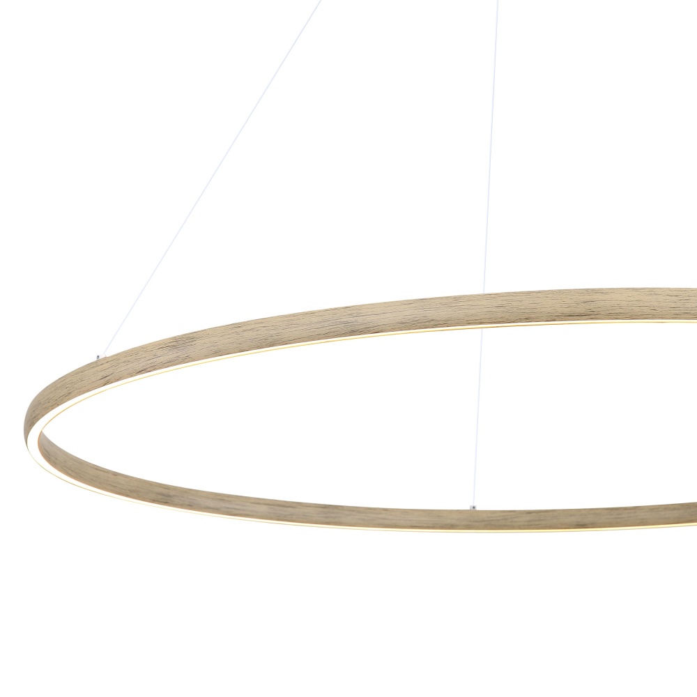 Bring modern elegance into your home with the Golden Lighting Veritas Integrated LED 47in Chandelier in Driftwood. This sleek design features an attractive Driftwood finish that captures the serene beauty of coastal elements. Utilizing integrated LED technology, this chandelier provides brilliant, energy-efficient illumination with a warm 3000K glow. The Driftwood finish realistically replicates sun-bleached wood with soft grays and pale beiges, enhancing any space's natural appeal. Perfect for dining rooms and foyers, this chandelier is dry location rated, ensuring it thrives in indoor spaces such as bedrooms and hallways. Its sloped-ceiling compatibility and adjustable height (30" to 123") make installation a breeze, allowing flexibility for various ceiling types. Dimensions: Overall Dimensions: 47.25"W x 1.13"H x 47.25"D. The integrated LED bulbs produce 5400 lumens, ensuring functional and stylish illumination. Elevate your surroundings with the perfect blend of quality and aesthetics in this elegant chandelier.