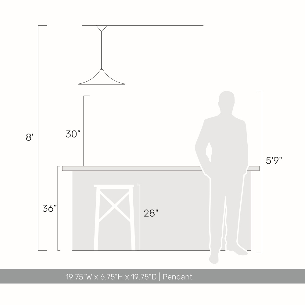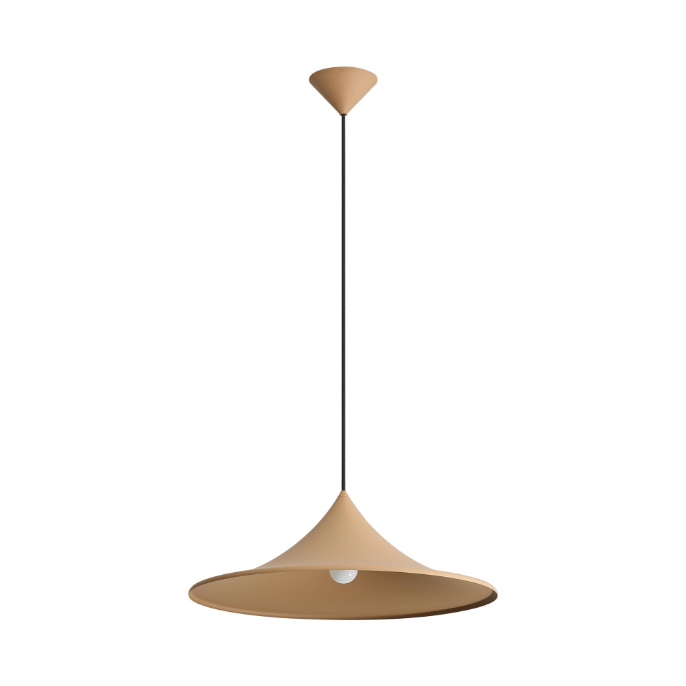 Bring modern sophistication into your home with the Golden Lighting Vistara 1-light 20in Pendant in Latte. Featuring a metal shade and a latte finish, it creates a cozy atmosphere. The metal shade has a smooth, non-reflective surface that provides a clean, minimalist look while absorbing light to create a calming ambiance. The latte finish, a warm light brown-beige, enhances the design’s organic warmth. Rated for dry locations, this pendant is ideal for indoor spaces such as bedrooms or living rooms. It is sloped-ceiling compatible and features an adjustable height ranging from 9.5" to 129.5". The overall dimensions are 19.75"W x 6.75"H x 19.75"D, and it requires 1 E26 medium base bulb (not included) with a maximum of 60 watts. Enhance your interior with this timeless fixture, showcasing exceptional craftsmanship and design quality.