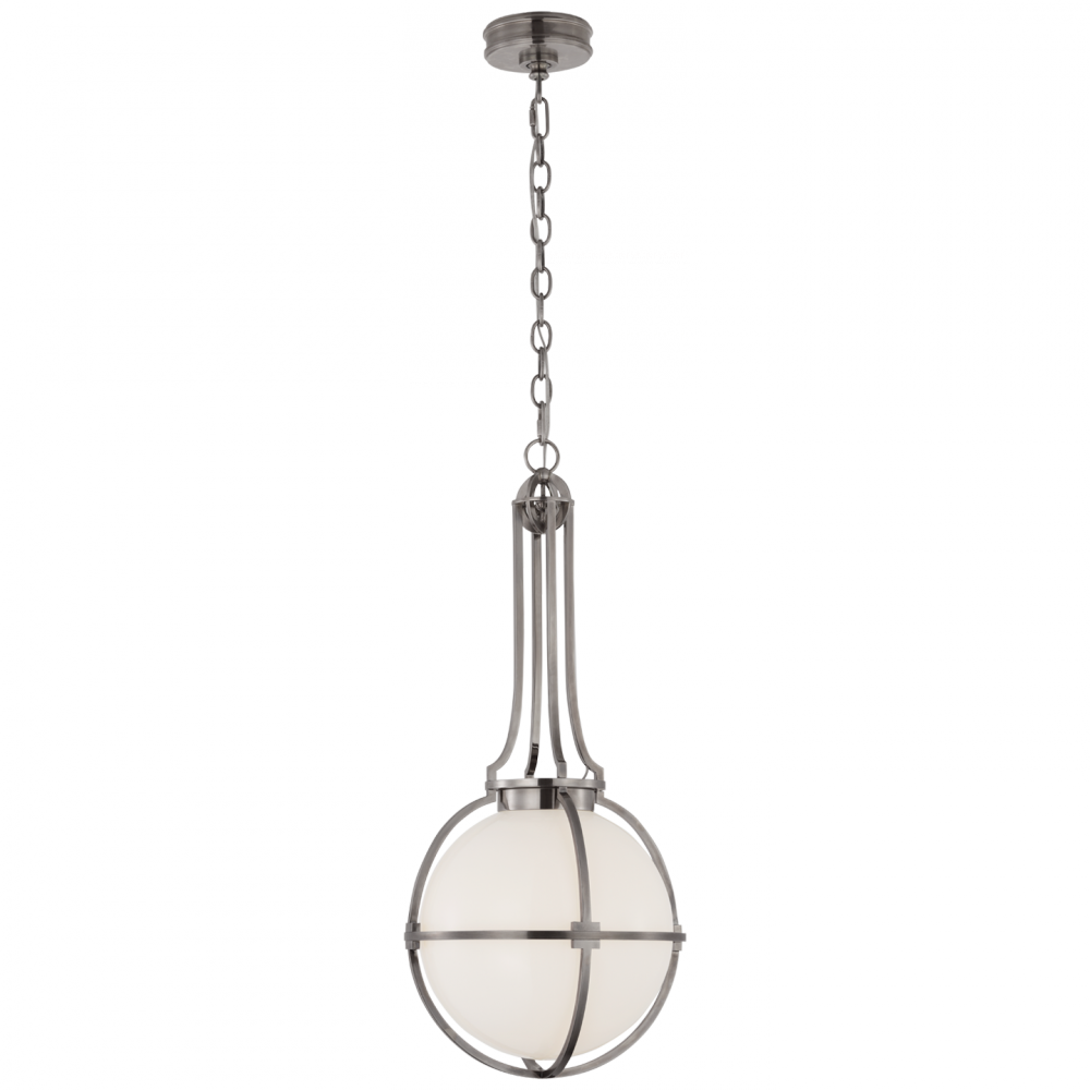 Gracie Medium Captured Globe Pendant in Antique Nickel with White Glass