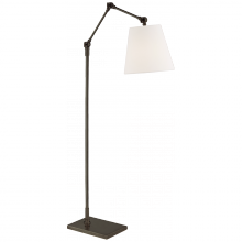 Graves Articulating Floor Lamp in Hand-Rubbed Antique Brass with Linen Shade