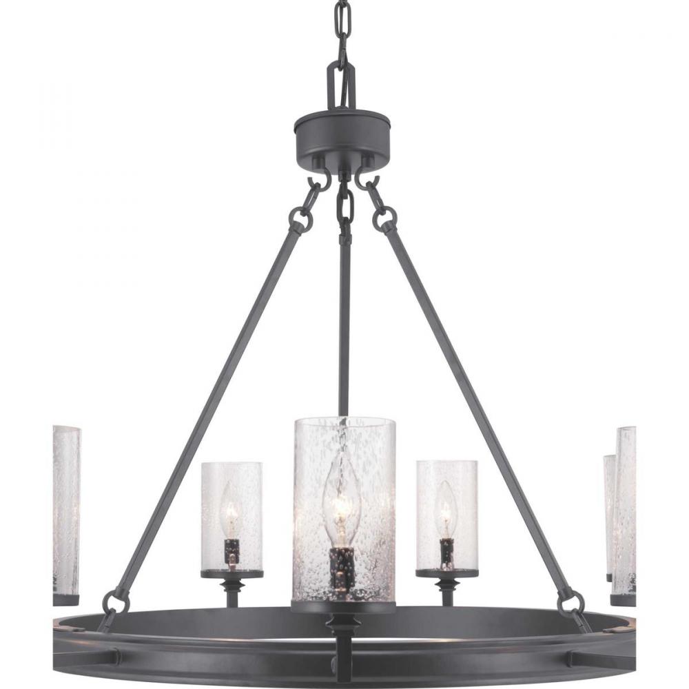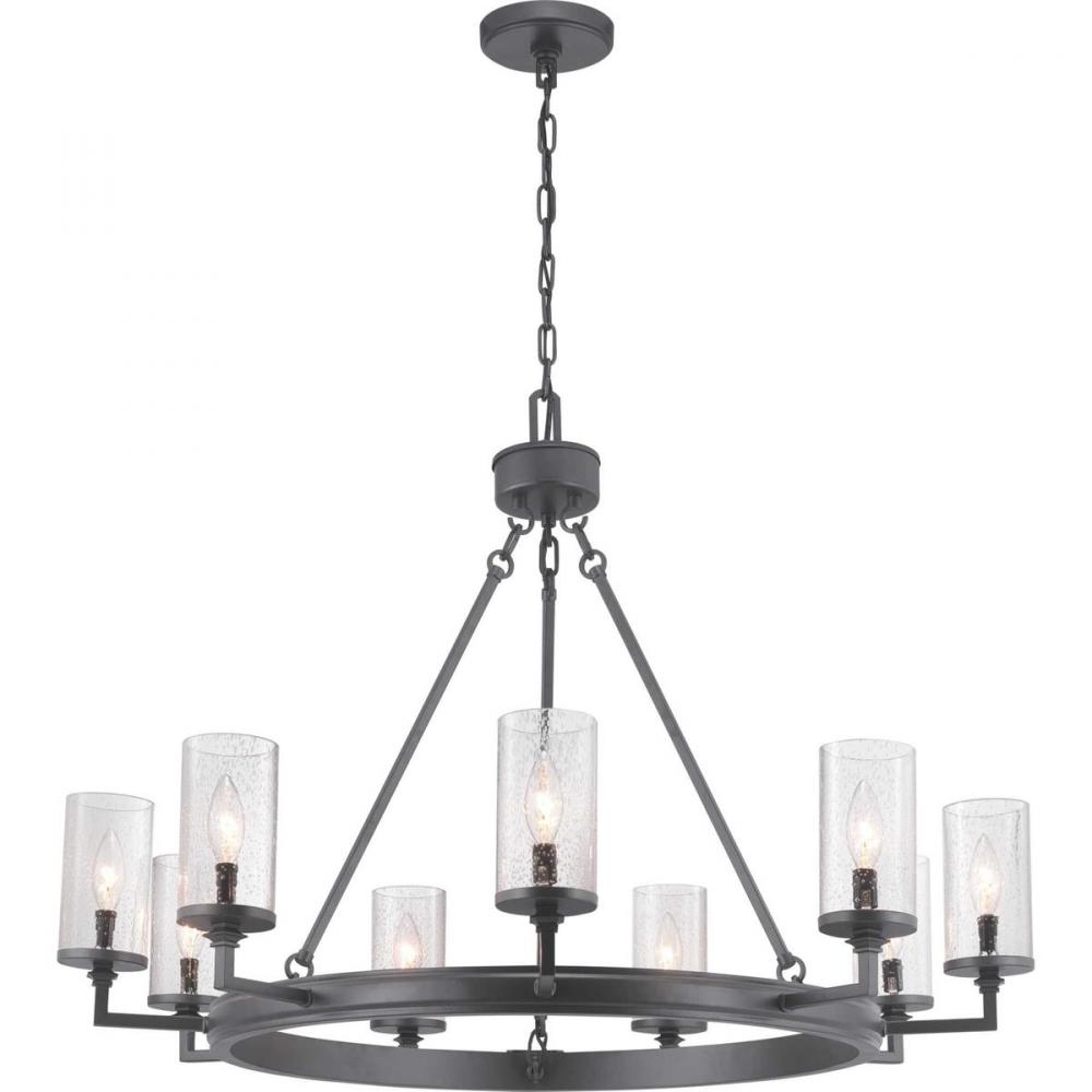 Progress P400165-143 - Gresham Collection Nine-Light Graphite Clear Seeded Glass Farmhouse Chandelier Light