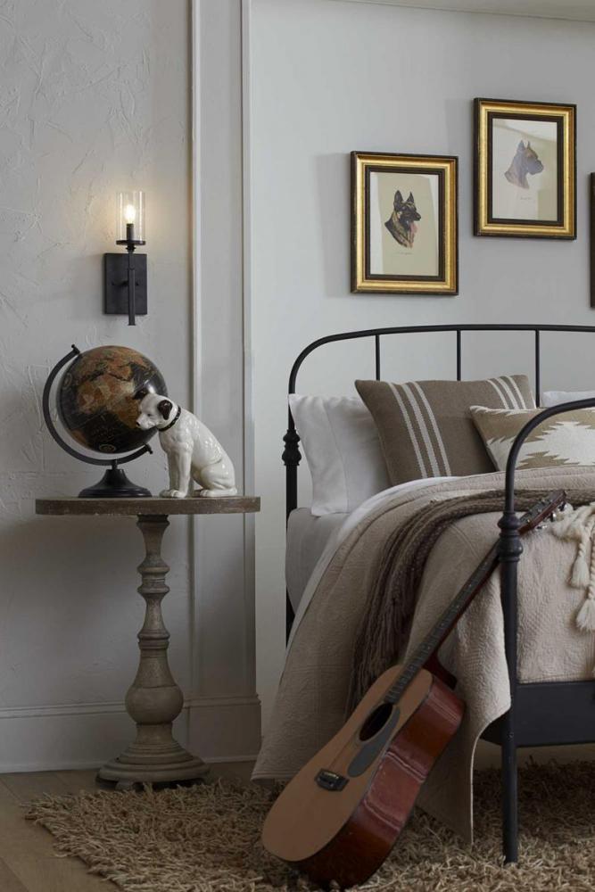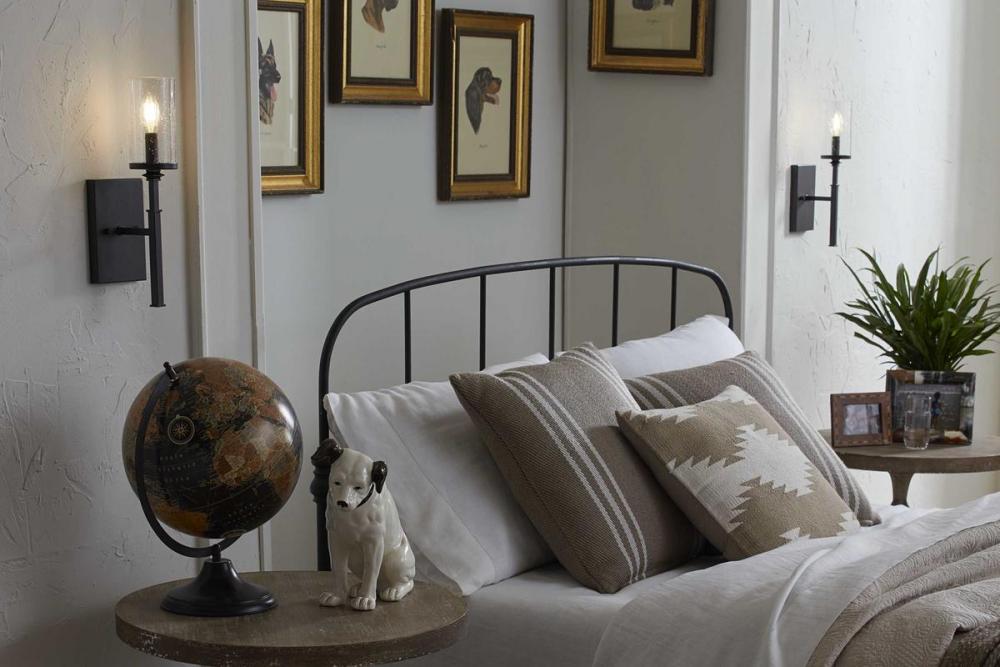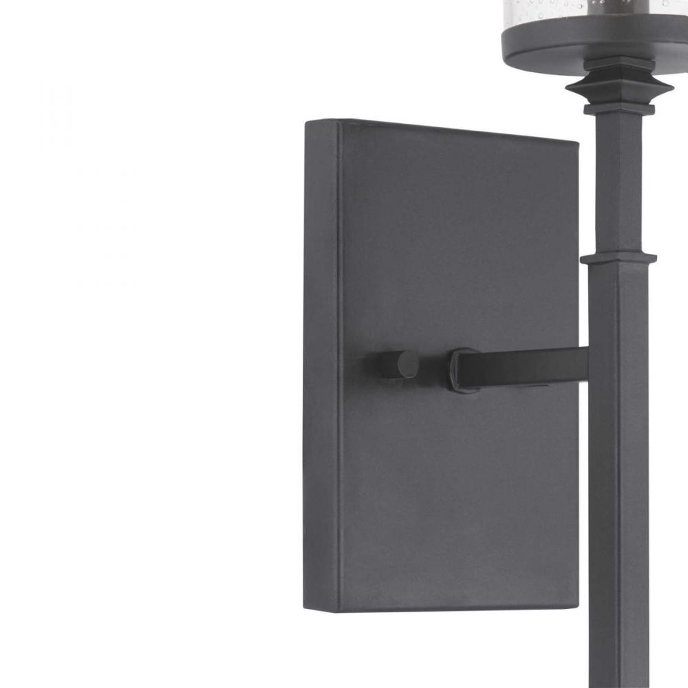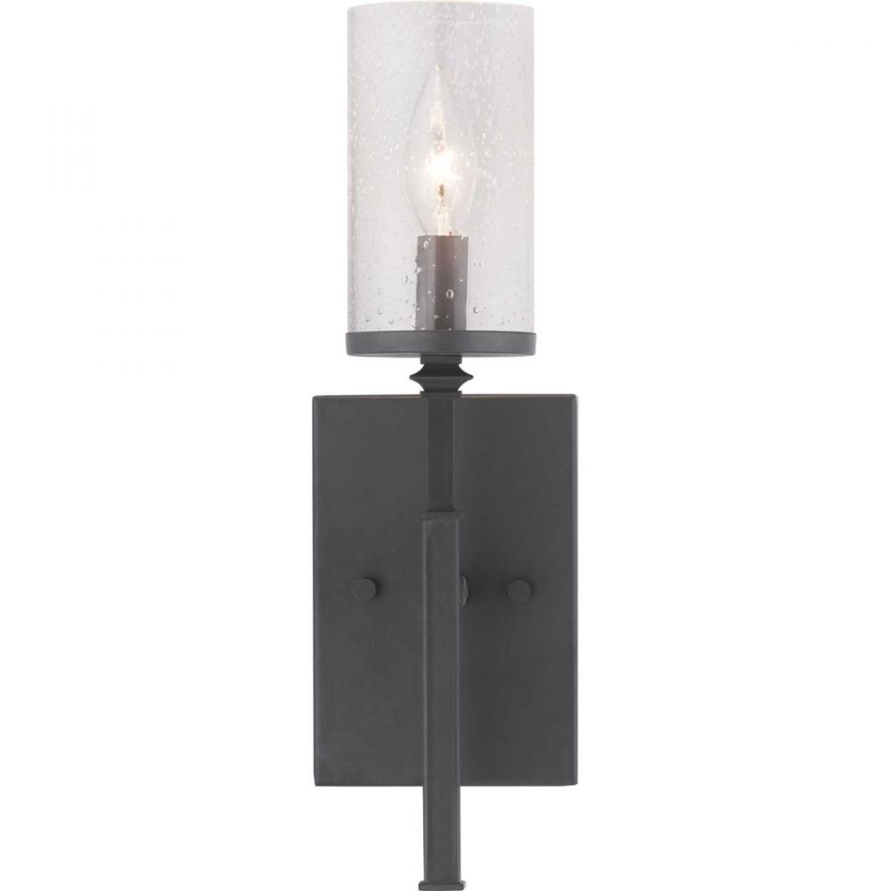 Graphite finishes and organic seeded-glass shades form the basis of this collection that channels traditional iron structures;This one-light wall bracket works well as a pair over a fireplace, on a dining-room wall or flanking a mirror in a powder room or