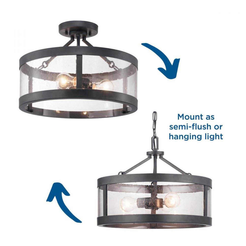 A display of substantial style in a three-light semi flush convertible, Gresham Collection’s frame was inspired by the elegance of traditional iron structures. Specific attention to forging details creates a distinctive collection for Transitional and Farmhouse interior spaces. Seeded glass shades and a Graphite finish pair together to complete the look.