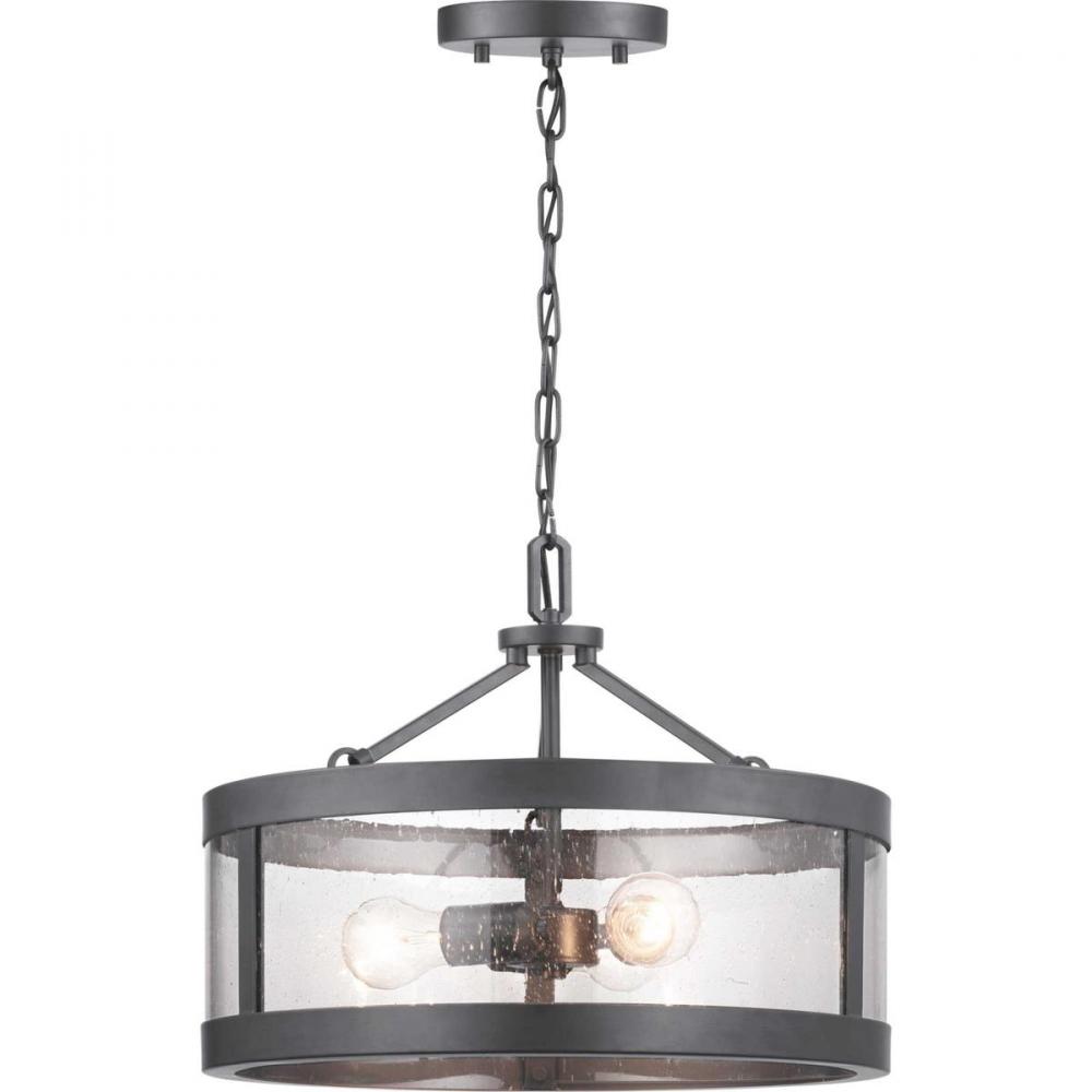 Progress P400165-143 - Gresham Collection Nine-Light Graphite Clear Seeded Glass Farmhouse Chandelier Light