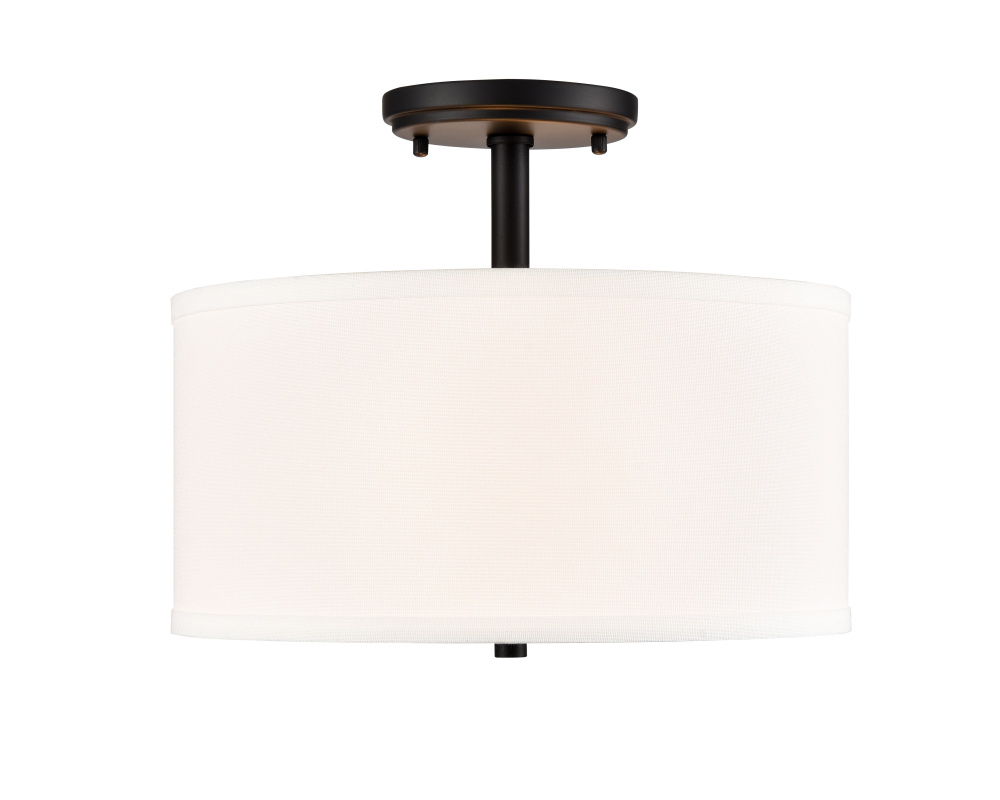 The Guyton Family of semi-flush and flush-mount lighting is defined by the crisp, white fabric shades, providing a warm and diffused effect. These fixtures are the perfect choice for an understated and polished design statement in any interior scheme, from ultra-modern to Art Deco. Whether selecting the matte black, brushed nickel, or modern gold finish, these 2-light fixtures provide the perfect glow for the foyer, hallway, or bedroom.