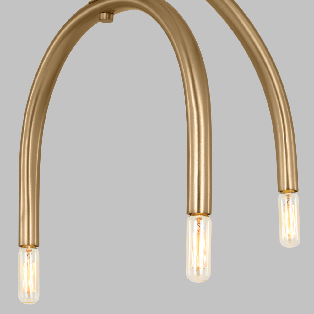 Add a modern statement with this unique chandelier. Hadden's mobile-like form allows you to adjust the arcing arms for an arrangement of your design. Playfully proportioned center hub and two finish options give this series plenty of elegant contrast.
