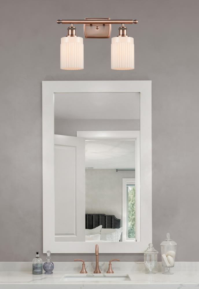 Hadley - 2 Light - 15 inch - Antique Copper - Matte White Shade - Bath Vanity Light