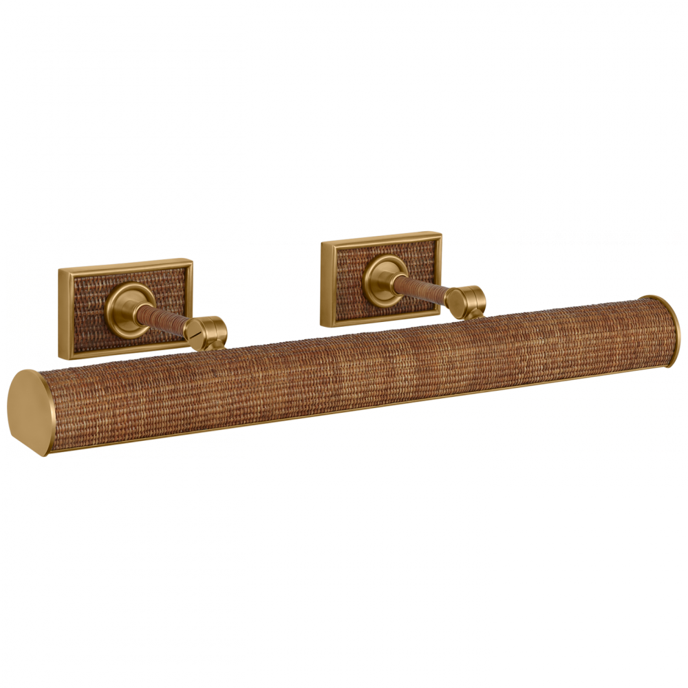 Halwell 24" Picture Light in Antique-Burnished Brass and Natural Woven Rattan
