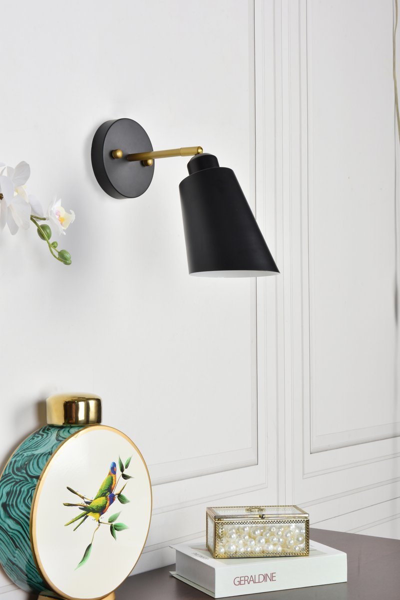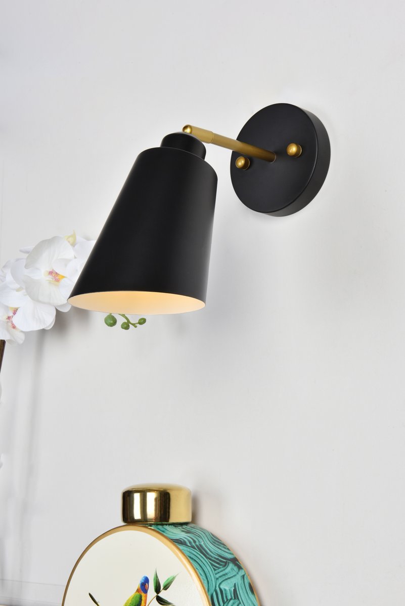 Elegant LD2354BK - Halycon 5 inch black and brass wall sconce