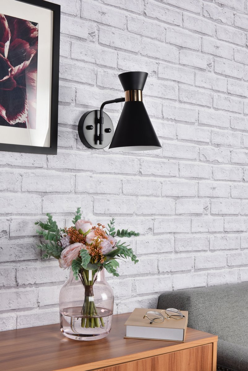 Illuminate your space with the brilliance of the Halycon Collection wall sconce. The cone dome creates a unique lighting and includes a dimmable feature that creates a calm mood. Available in a black and/or brass finish, this minimalistic piece will fit perfectly into your living room or bedroom. This product comes in a five or six inch length and requires one E26 socket. Light bulbs not included.