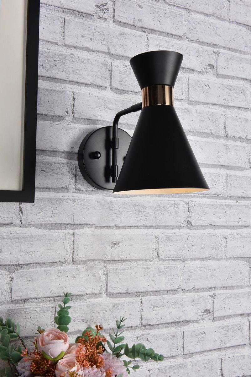 Elegant LD2354BK - Halycon 5 inch black and brass wall sconce