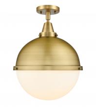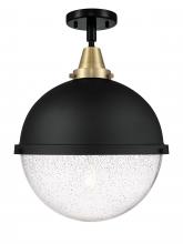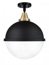 Hampden - 1 Light - 13 inch - Black Antique Brass - Matte Black Hampden 12" with Matte White glass Shade - Flush Mount