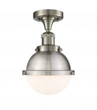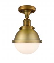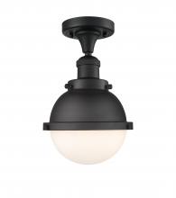 Hampden - 1 Light - 7 inch - Black Antique Brass - Matte Black Hampden 6" with Matte White glass Shade - Semi-Flush Mount
