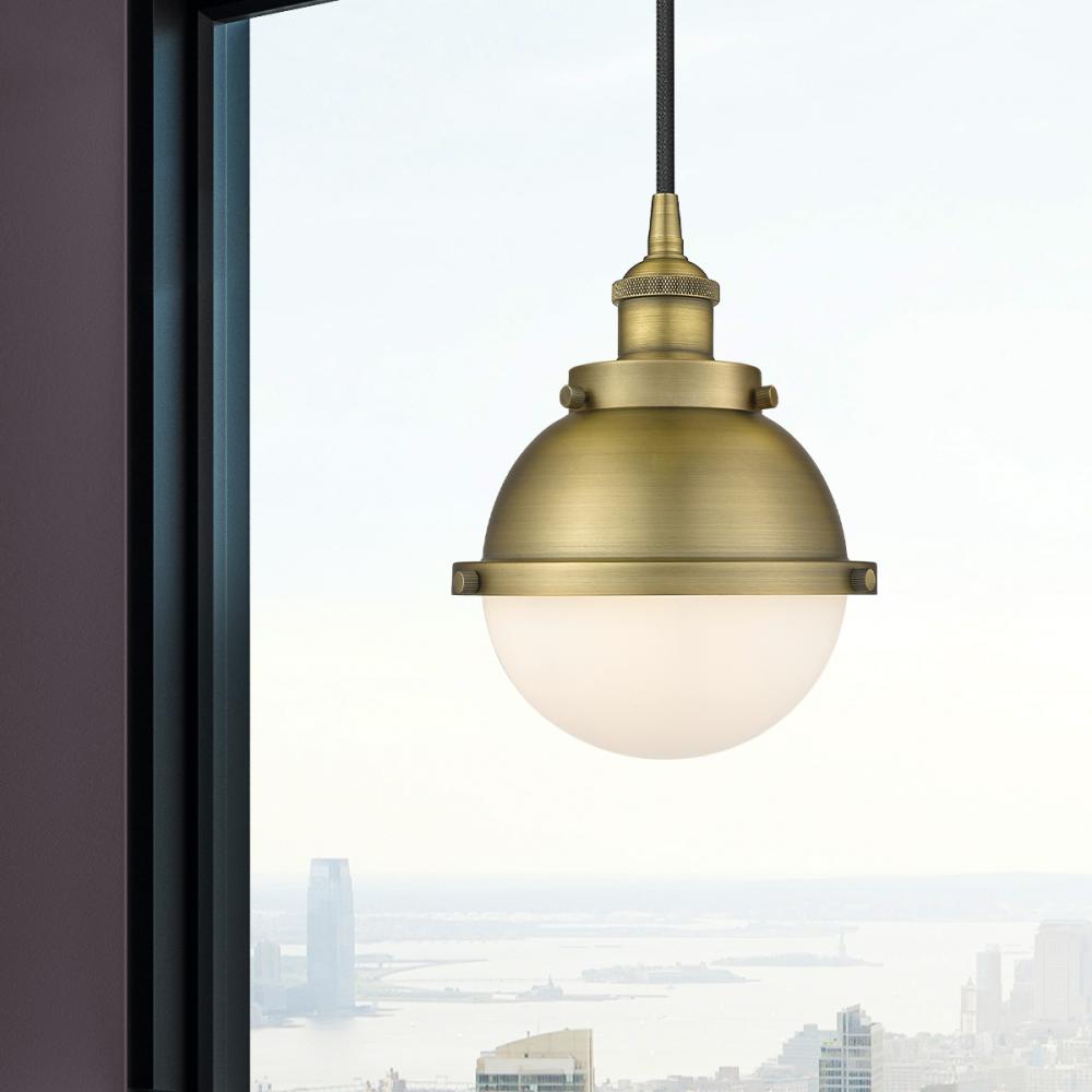 Hampden - 1 Light - 7 inch - Brushed Brass - Brushed Brass Hampden 6" with Matte White glass Shade - Cord hung - Mini Pendant