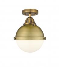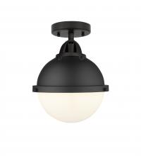Hampden - 1 Light - 9 inch - Black Antique Brass - Matte Black Hampden 8" with Matte White glass Shade - Semi-Flush Mount