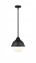 Hampden - 1 Light - 9 inch - Black Antique Brass - Matte Black Hampden 8" with Matte White glass Shade - Stem hung - Mini Pendant