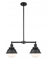 Hampden - 2 Light - 18 inch - Black Antique Brass - Matte Black Hampden 6" with Matte White glass Shade - Stem Hung - Adjustable Island Light