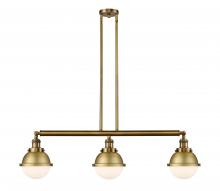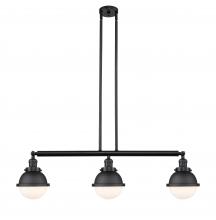 Hampden - 3 Light - 40 inch - Black Antique Brass - Matte Black Hampden 6" with Matte White glass Shade - Stem Hung - Adjustable Island Light