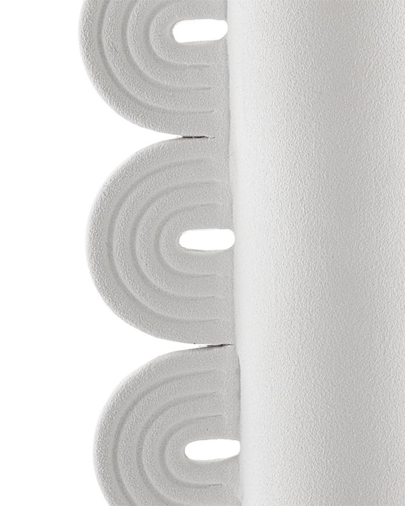 Proving our artisanal prowess with materials is our Happy 40 collection, which includes our Happy 40 Tube White Vase. Each of the ceramic bodies of the seven vases in this family, inspired by the "Art Decoratif" period, are hand thrown. with the designs that have handles, they require great skill to adjust to the sides of each vase symmetrically. The necks of these decorative vases are straight, which means they do not have a circular edge at the mouth to reinforce them during baking; and the texture is hard to obtain, which means they have to be fired at a special temperature.