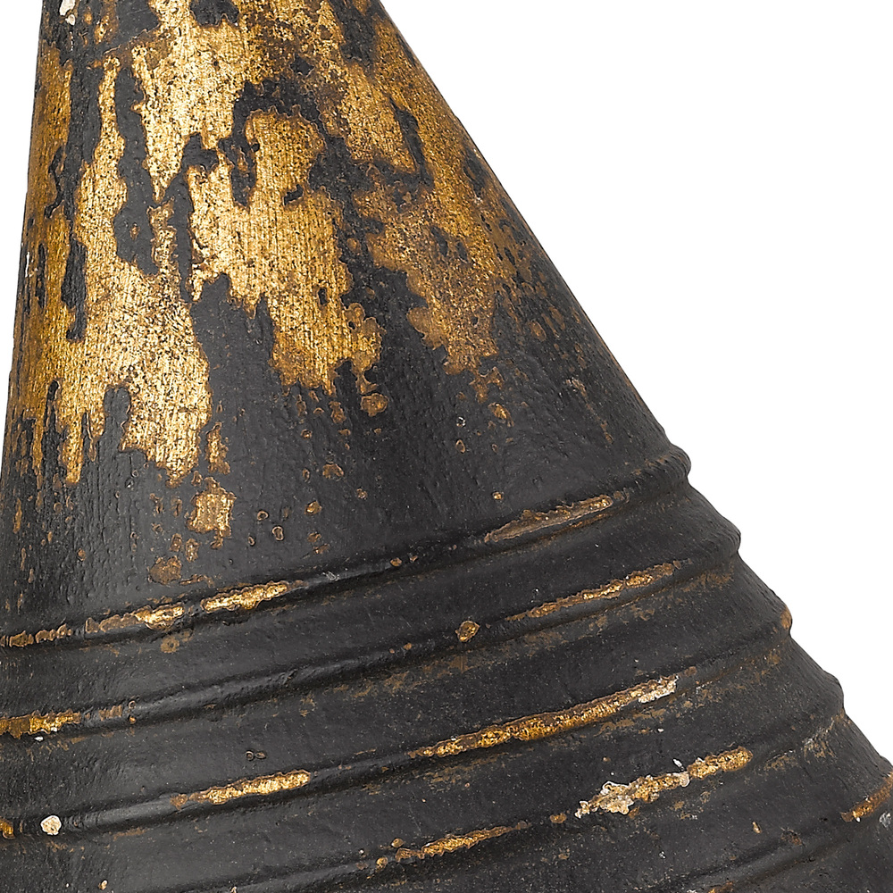 Step up to Hardy. The conical shade, subtle steppe ridges, and distinct aged gold highlights make this the perfect fixture for rustic and industrial homes. Balanced by a dark Antique Black Iron base, metallic highlights are perfectly placed to enhance the design and demand a closer look. This mini pendant may be hung alone or grouped over an island or countertop.