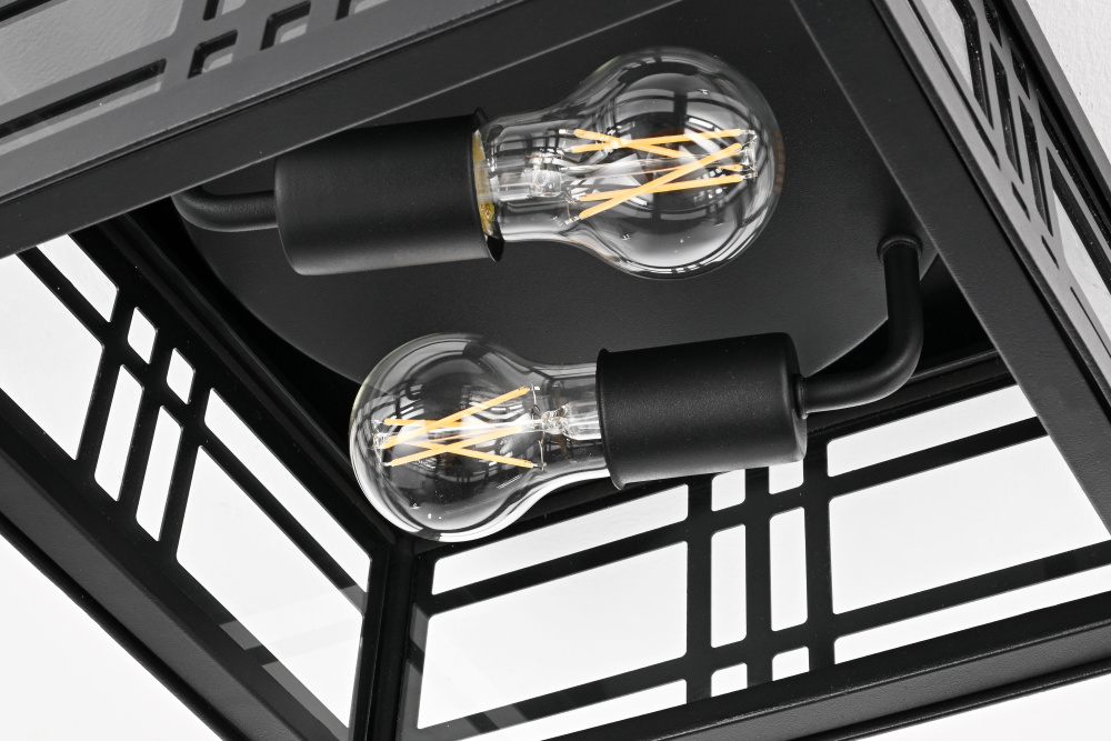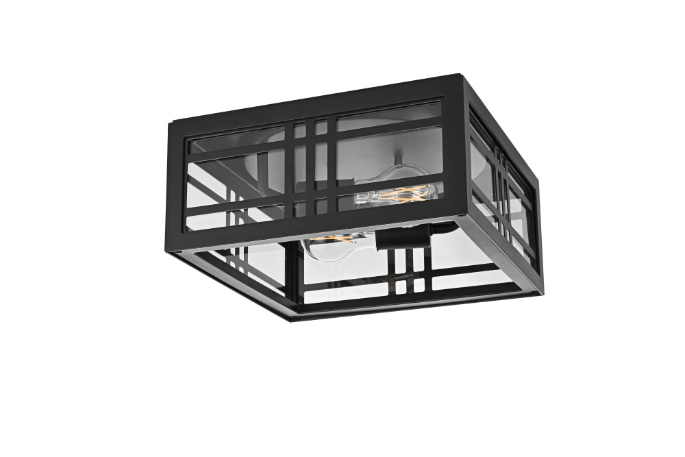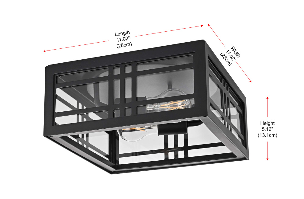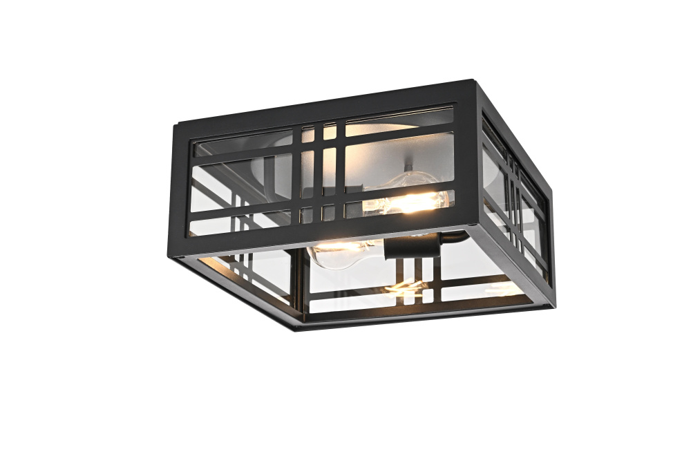 This outdoor flush mount light features a bold geometric metal frame with a grid-inspired design, bringing a structured, architectural presence to covered exterior spaces. The clear glass panels provide full visibility of the bulbs, maximizing illumination while maintaining a defined, modern look. Built from iron and aluminum, the black-finished frame is designed for long-term durability in damp environments. The open-bottom design ensures easy bulb changes, while the flush mount installation makes it ideal for covered patios, porches, breezeways, and entryways. Requiring two medium-base E26 bulbs (not included), this fixture is also dimmable, allowing for adjustable brightness. ETL Damp Rated, this light is built to withstand humidity and moisture while delivering a modern, structured aesthetic for outdoor spaces. Built with marine-grade, corrosion-resistant aluminum, this sconce withstands coastal conditions for long-lasting durability.