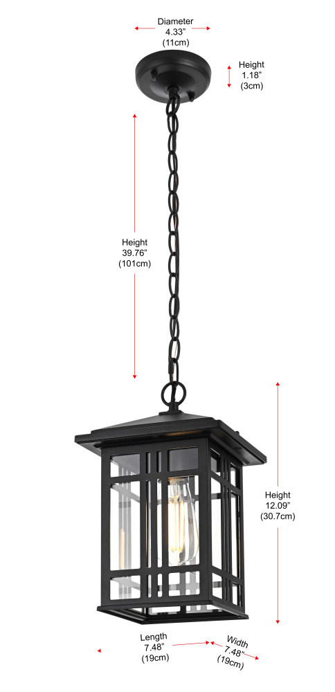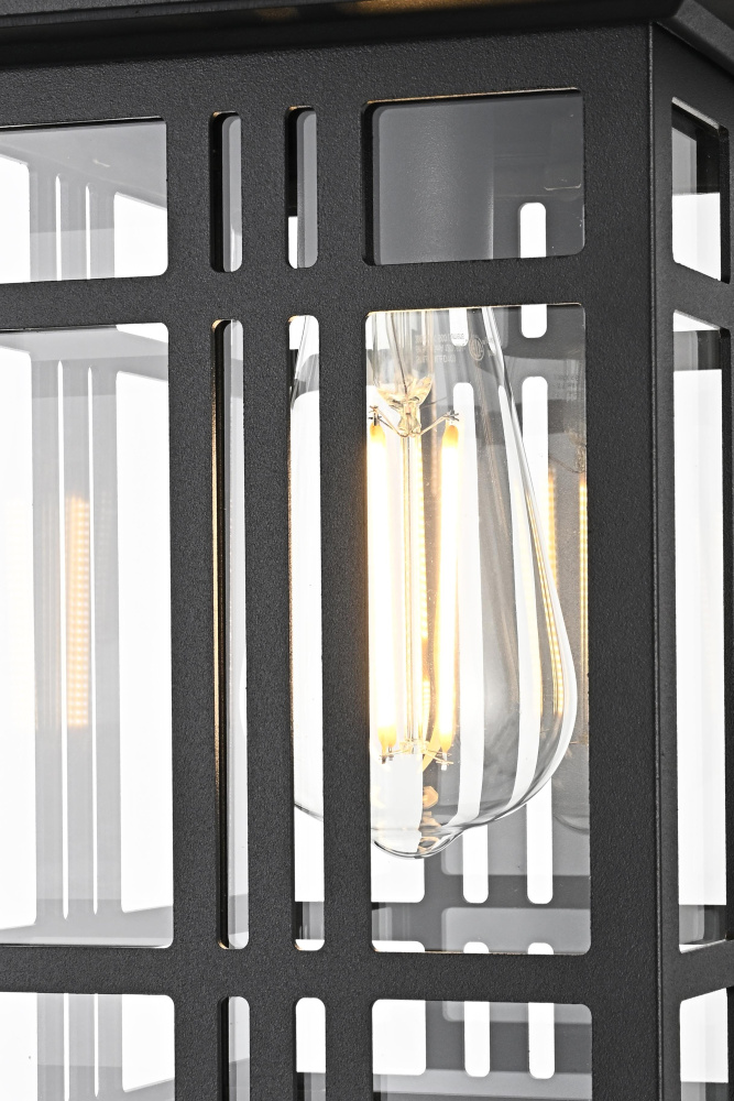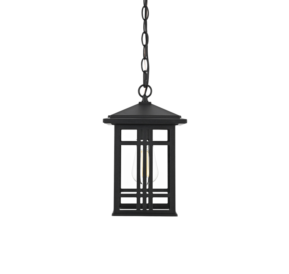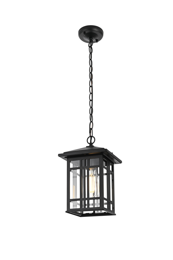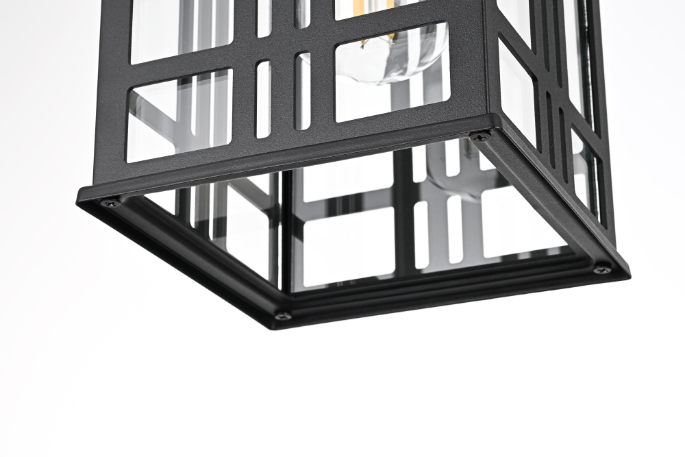 This outdoor pendant light features a structured rectangular frame with a decorative grid pattern, creating a defined, architectural presence for exterior spaces. The clear glass panels maximize illumination while allowing the bulb to remain visible, adding a touch of timeless appeal. Built from iron and aluminum, the black-finished frame is designed for long-term durability in outdoor conditions. The fixed 39-inch chain ensures a consistent hanging height, making it ideal for entryways, patios, and covered walkways. The open-bottom design allows for easy bulb replacement, and the fixture supports a medium-base E26 bulb (not included). Dimmable and ETL Damp Rated, this pendant is designed to withstand rain and outdoor exposure, providing structured, reliable lighting for a variety of outdoor settings. Built with marine-grade, corrosion-resistant aluminum, this sconce withstands coastal conditions for long-lasting durability.