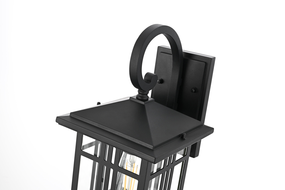 The square backplate provides a stable mount while complementing the lantern’s structured design.