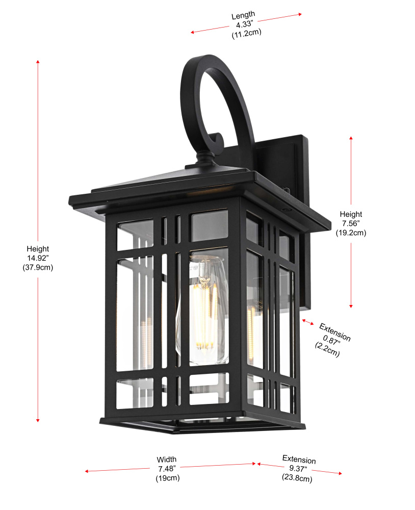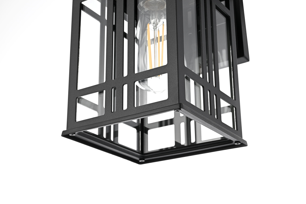 This outdoor wall light features a bold geometric metal frame with a grid-inspired design, bringing a structured, architectural presence to covered exterior spaces. The clear glass panels provide full visibility of the bulbs, maximizing illumination while maintaining a defined, modern look. Built from iron and aluminum, the black-finished frame is designed for long-term durability in damp environments. The open-bottom design ensures easy bulb changes, while the flush mount installation makes it ideal for covered patios, porches, breezeways, and entryways. Requiring one medium-base E26 bulb (not included), this fixture is also dimmable, allowing for adjustable brightness. ETL Wet Rated, this light is built to withstand humidity and moisture while delivering a modern, structured aesthetic for outdoor spaces. Built with marine-grade, corrosion-resistant aluminum, this sconce withstands coastal conditions for long-lasting durability.