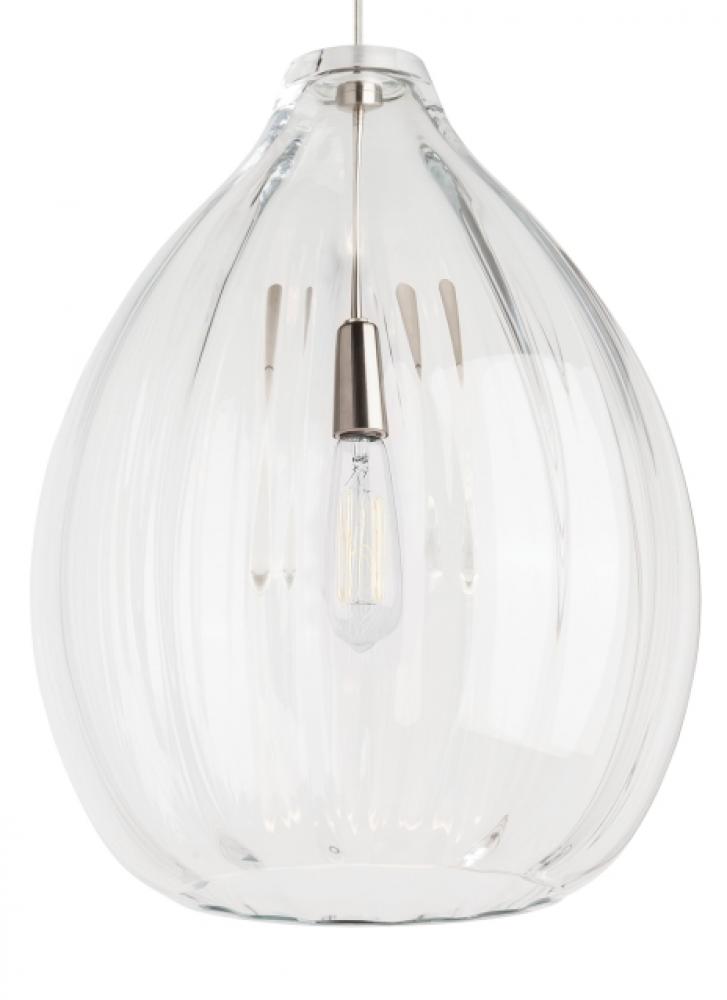 The Harper pendant by Visual Comfort Modern Collection draws the eye with its beautiful tear dropped ribbed organic texture. This large glass pendant is handcrafted by highly skilled artisans on Murano Island Venice. The artisans start by creating a classic bulb shape and then gently manipulate the glass into a perfectly ribbed texture. This contemporary glass pendant comes in multiple on-trend finishes. Available lamping options include energy efficient LED or no-lamp, leaving you the option to light this fixture with your preferred lamping. The LED lamping option is fully dimmable to create the desired ambiance in your special space. With its grand scale and beautiful color options the Harper pendant is ideal for dining room lighting, home office lighting and foyer lighting.